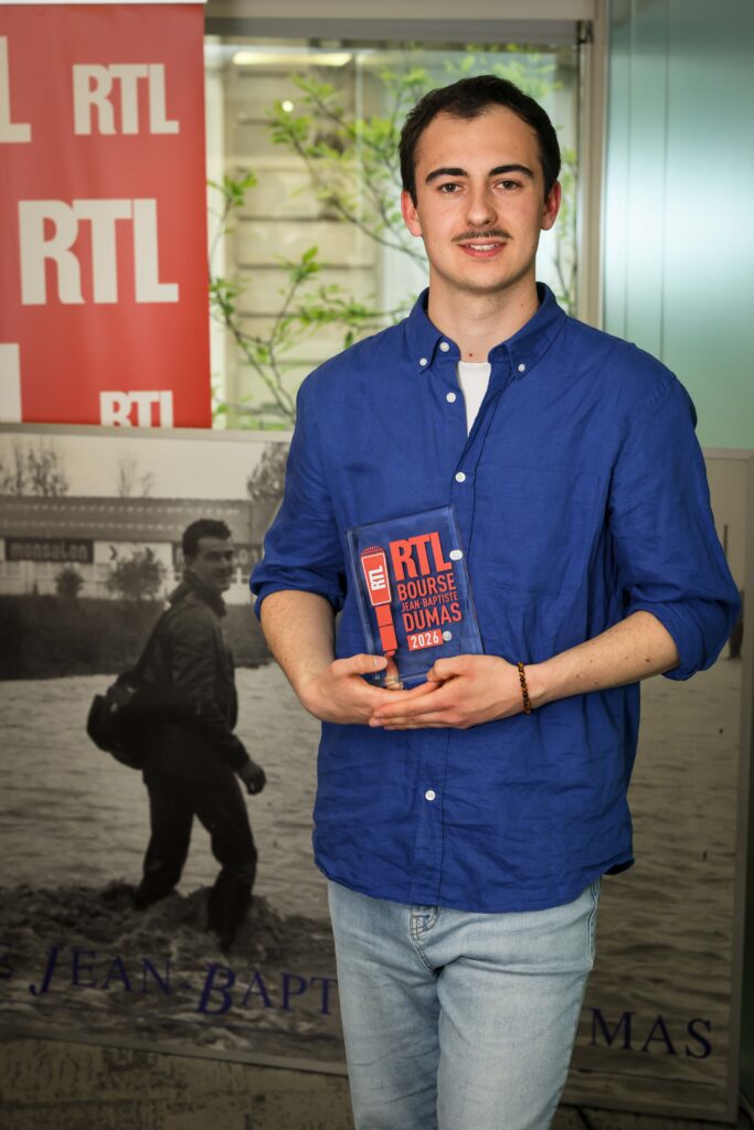 La Bourse Jean-Baptiste Dumas 2026 a été décernée à Mathis Lang ce jeudi 2 avril. Le prix lui a été remis par Anne-Sophie Lapix, présidente du jury, et Hervé Beroud, directeur de l’information du Groupe M6. La remise de la bourse a eu lieu dans les locaux de RTL en présence du jury et de la famille de Jean-Baptiste Dumas.